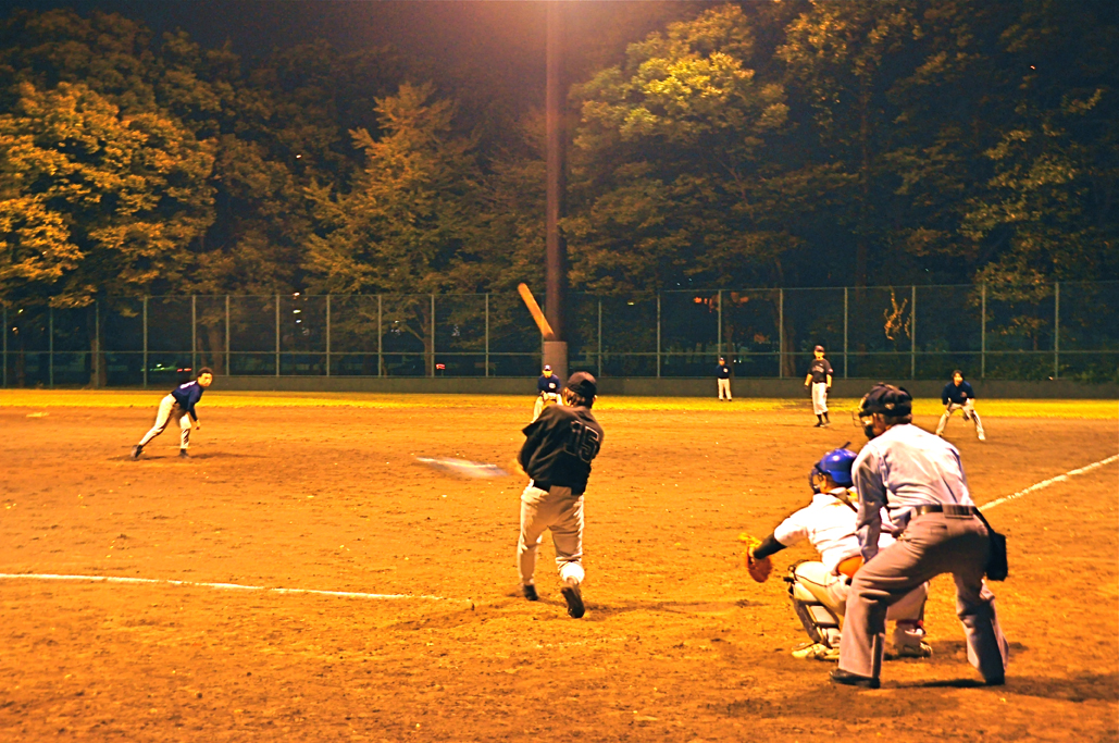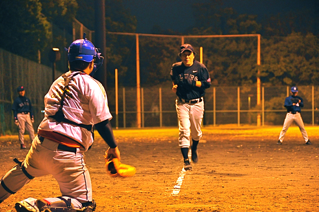 この日の先発はブーマー。いつものように一巡目はまずまずも2巡目でつかまり始めたところでしんごにリレー。しかしこの日のしんごは珍しくストライクがなかなか入らず、ずるずると塁を埋めてはタイムリーヒットを打たれる展開。それでもブルースが最近得意のビッグイニングで大逆転、4点のリードで迎えた最終回だったが、この日の勝利の女神はTGAIAに微笑んだ。シーズン終盤に痛恨の逆転サヨナラ負け。反省多しの夜。(合計得点は審判判断で13×14となったが、ブーマー記録員によると14×14だったはずと。)![]()