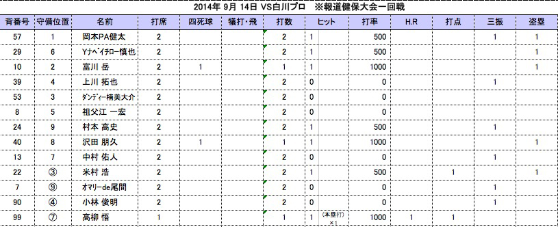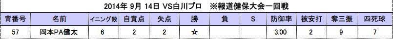 | 白川プロ | 0 | 0 | 0 | 0 | 0 | 2 | 2 | |||