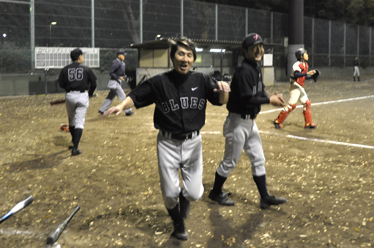 またもや健太の邪念が顔をだした。完封勝利目前の5回裏、四谷に執念のツーランホームランを浴び、彰爺の火消しを乞うことに。まだまだ修行が足りんという野球の神様のおぼしめしか。しかし、ブルースはTANUKIリーグの優勝争いに向けて大きな1勝をあげた!!![]()