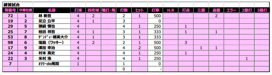 久しぶりにコーヘーも参戦、GW最後の土曜日、打っては首位打者こうじが更にヒットを二本追加、投げては今季初先発新吾がなんとか5回を投げきり、最終回はワイ鍋がピシャリ、