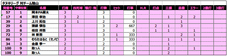昨年から続く不敗記録。惜しくも終盤追いつかれるも、勝ち越しは許さず引き分け。しかし、チーム陰山はなかなか手ごわい。今シーズンのTANUKIリーグは厳しい戦いが増えそう。![]()