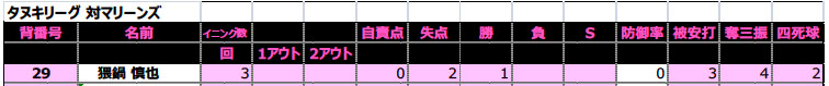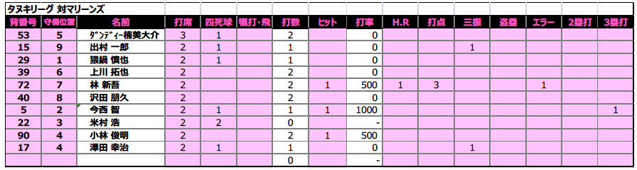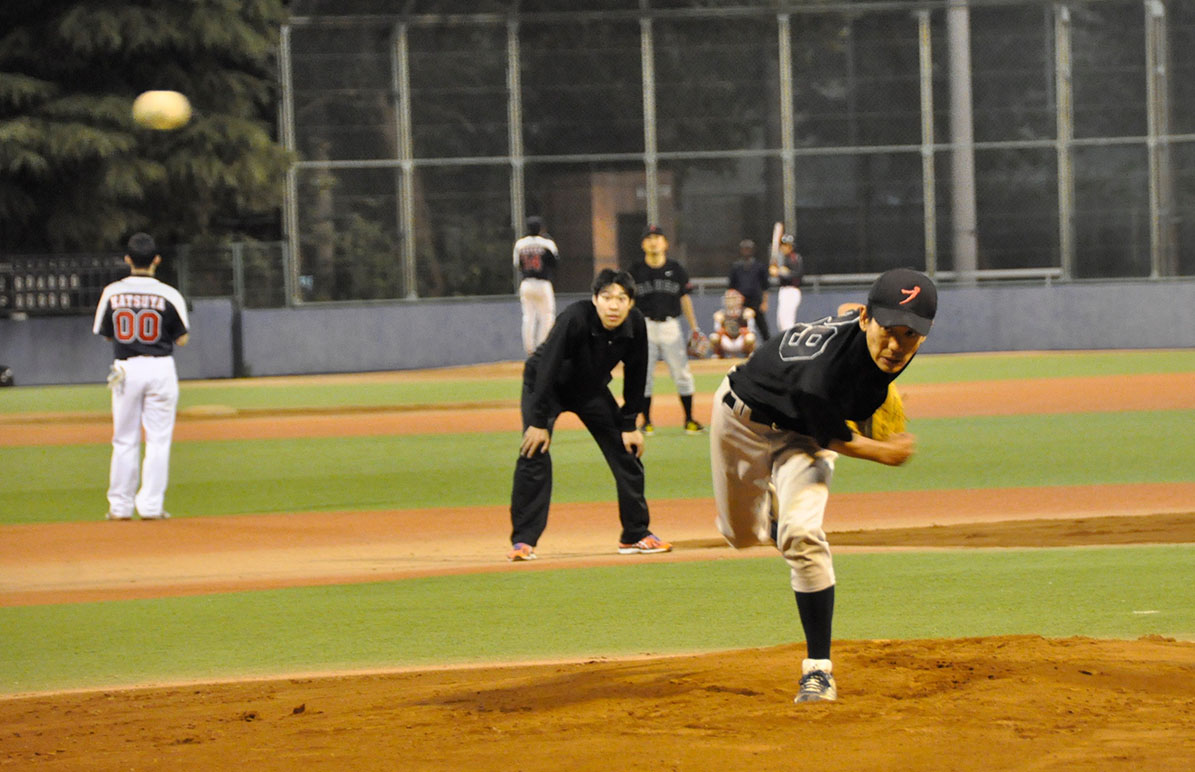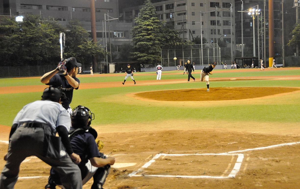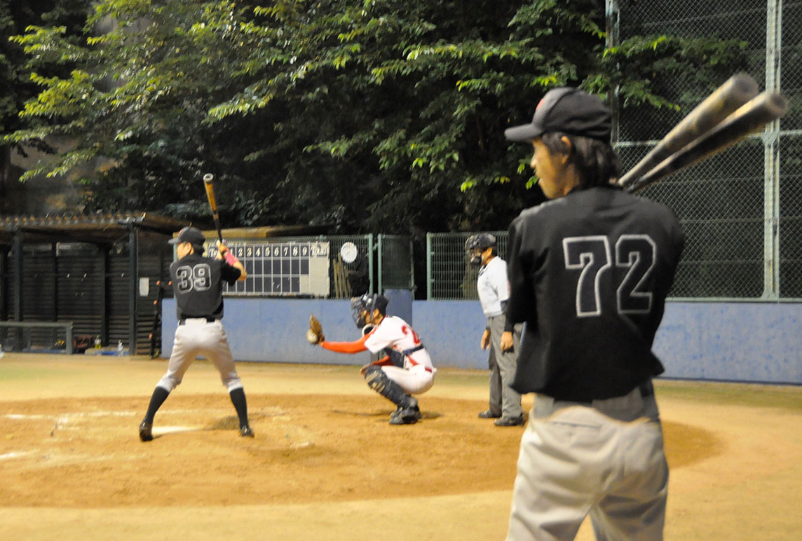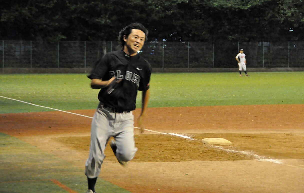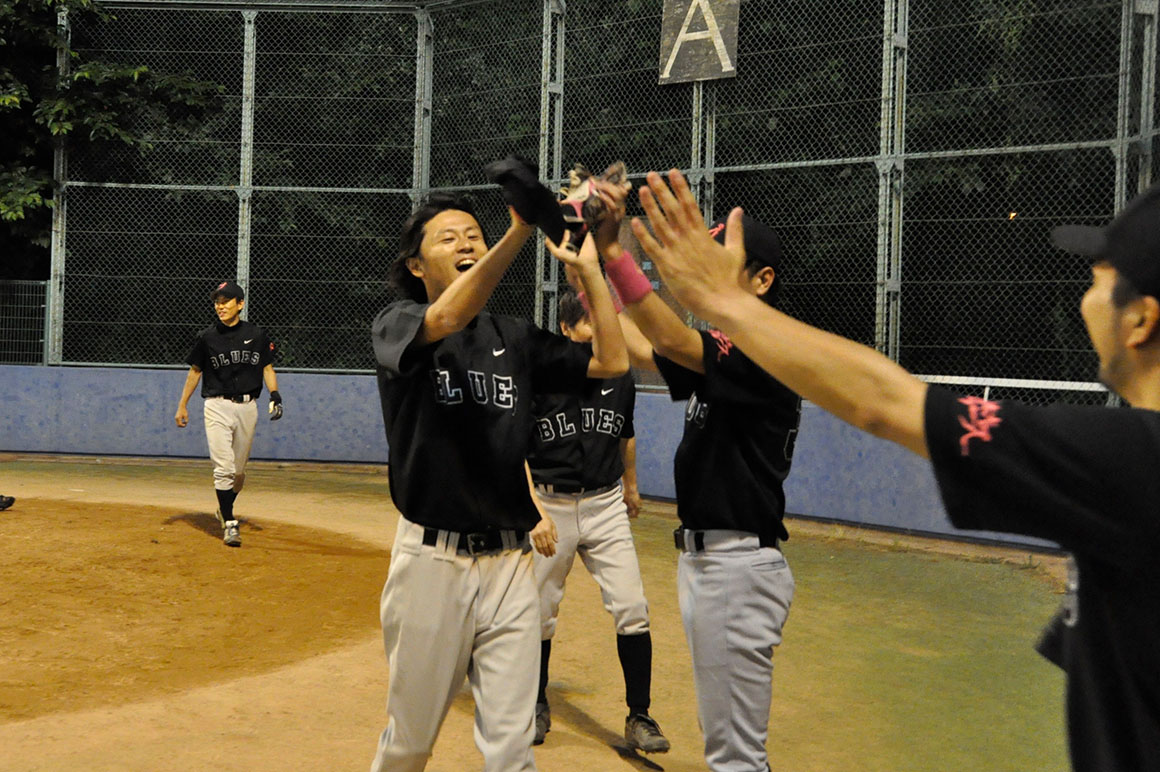ソニック・ローさんのチョンボでグラウンドが予約されておらず、急遽一面を4チームで分け合う1時間ゲームとなったこの日の敵は、強豪マリーンズ。序盤、酔っぱらい新吾のポロポロエラーに端を発し2点を先行され、その後も速球とアウトコースへ逃げるスライダーを操る相手投手を攻めあぐむ苦しい展開となったが、時間切れも見えてきた4回裏ブルース最後の攻撃で、なんとその新吾が起死回生の逆転3ランホームラン!負けないブルース伝説、まだまだ続くなり!