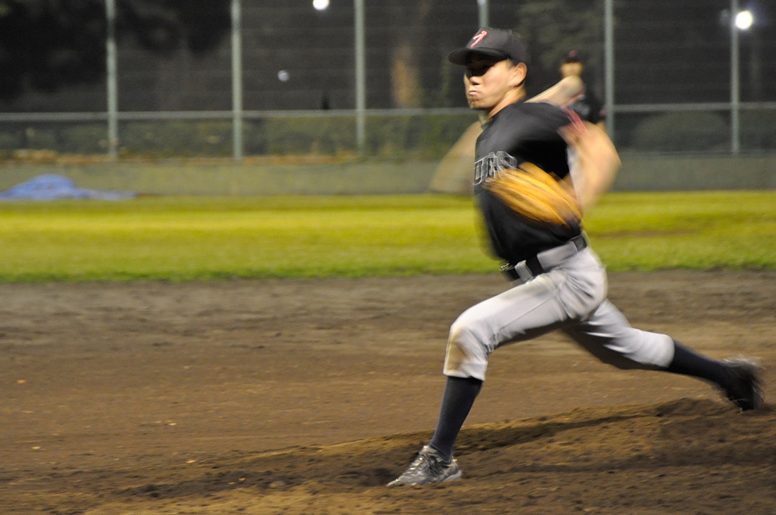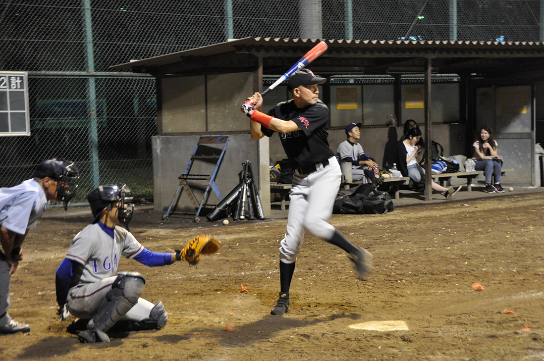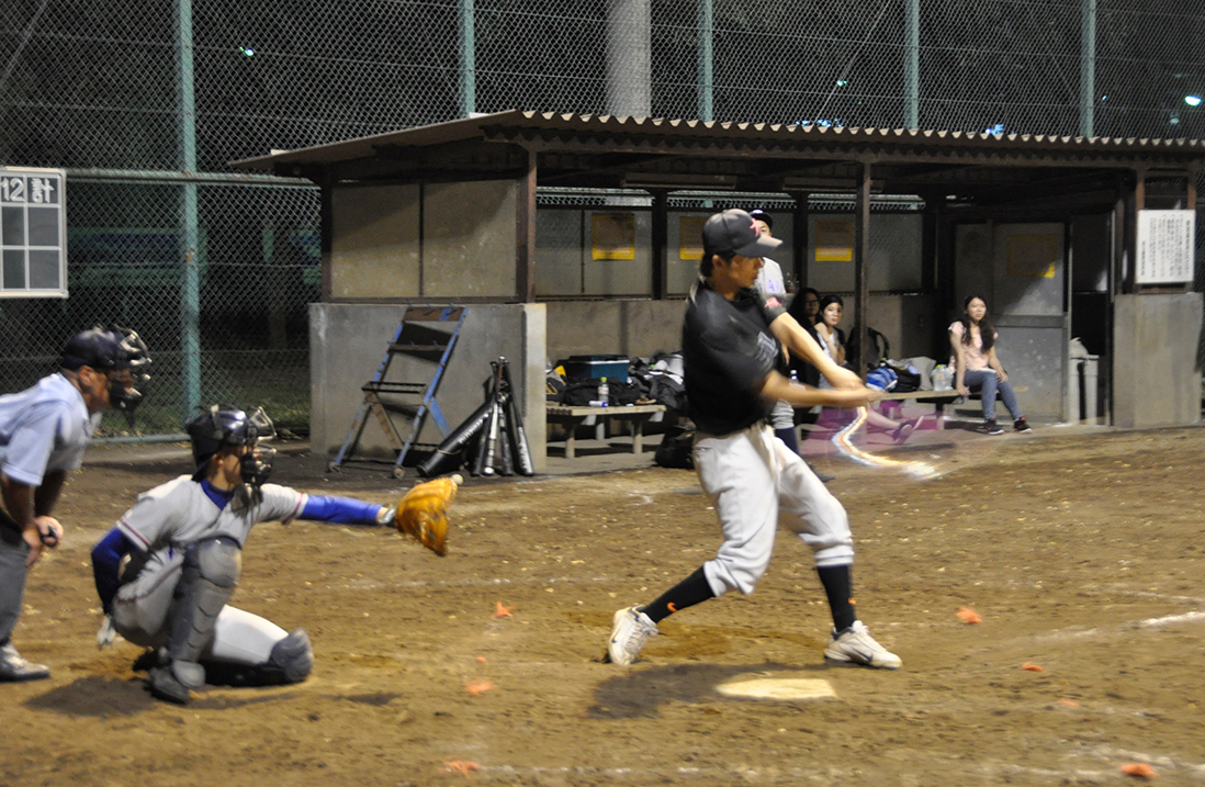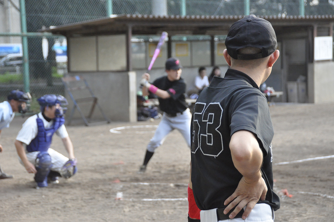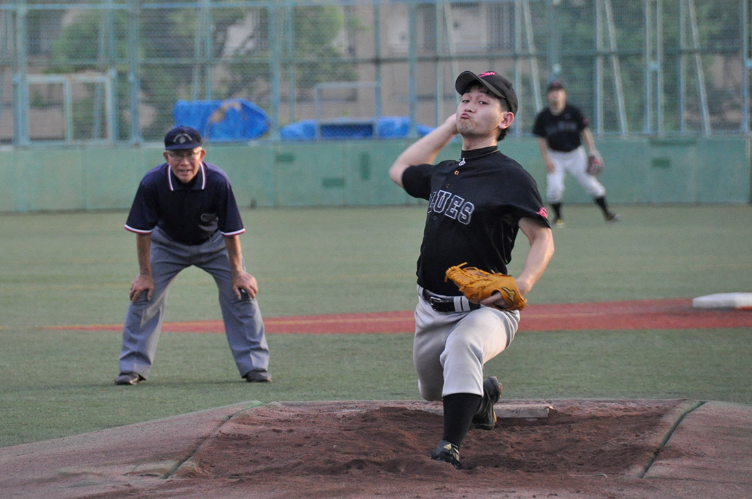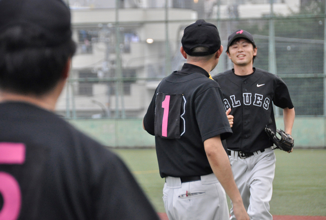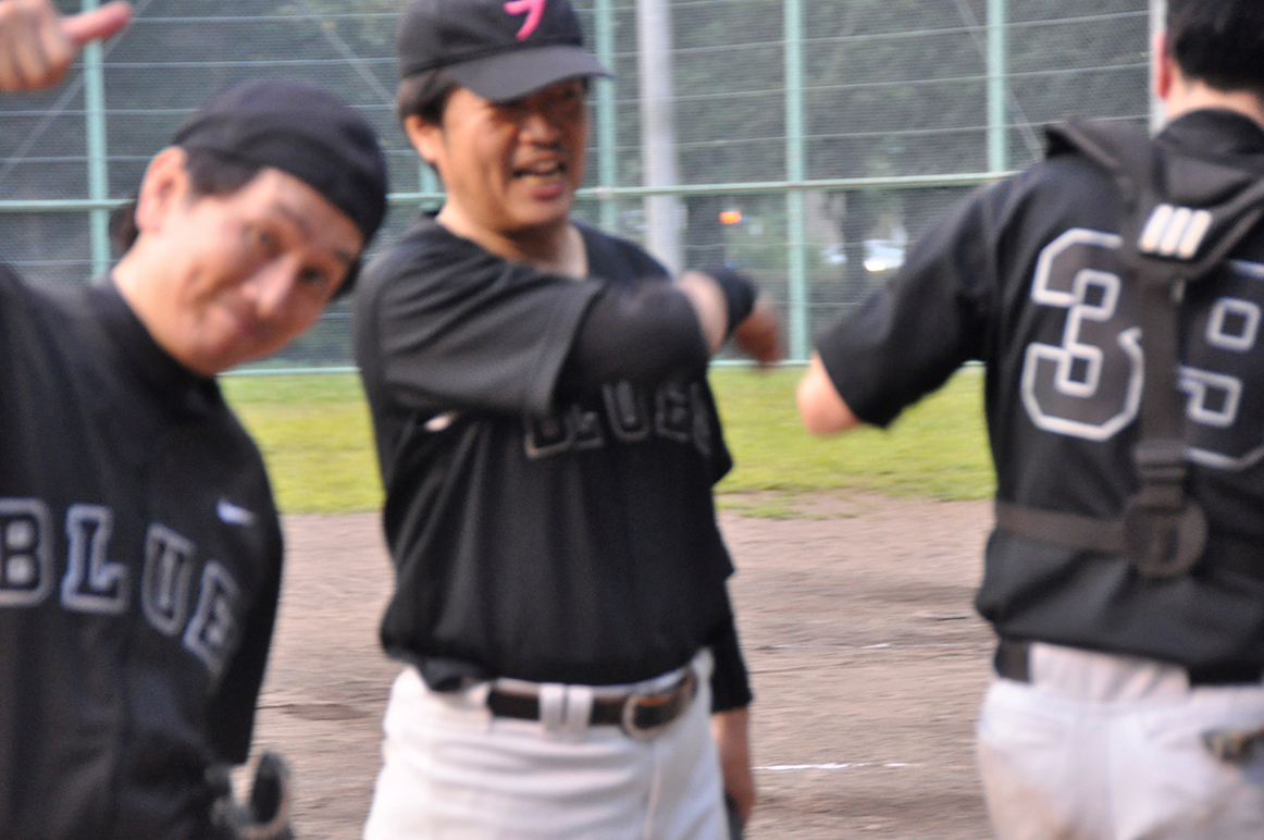 この日は変則、あのMASASHI'Sを迎えてのTANUKIリーグ公式戦。久々のブルースマウンドに立った彰爺の乱調を受け、ワッキーが粘りのピッチング。最終回に思わぬ反撃を許すも辛くも一点差で逃げ切った。オマリーの二度に渡るライトからの二塁での封殺プレイ、ライトゴロのプレーが光った!!にしてもそのあとのこの顔、悪い顔だね〜!