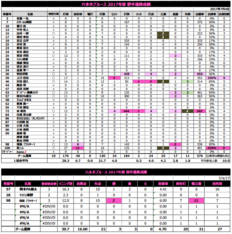 | MASASHI'S | 2 | 0 | 1 | 0 | 0 | 6 | 9 | |||