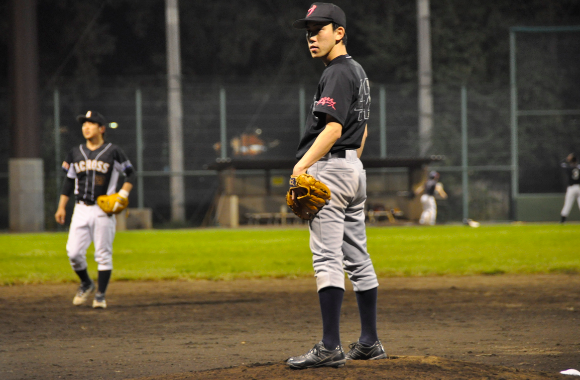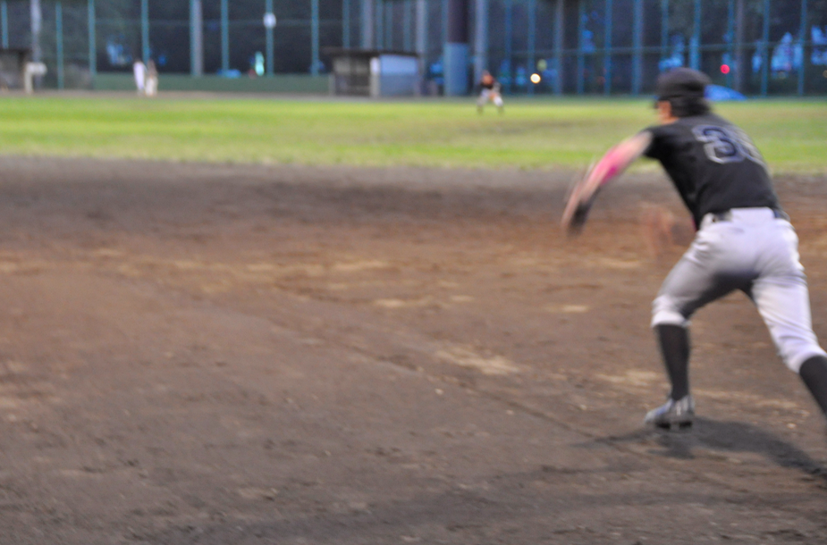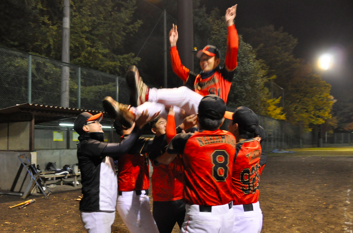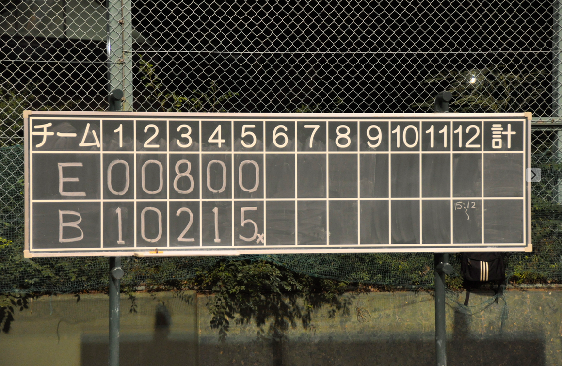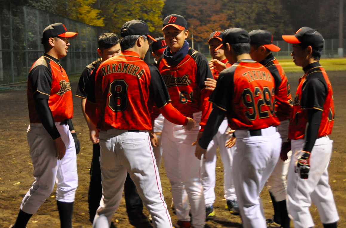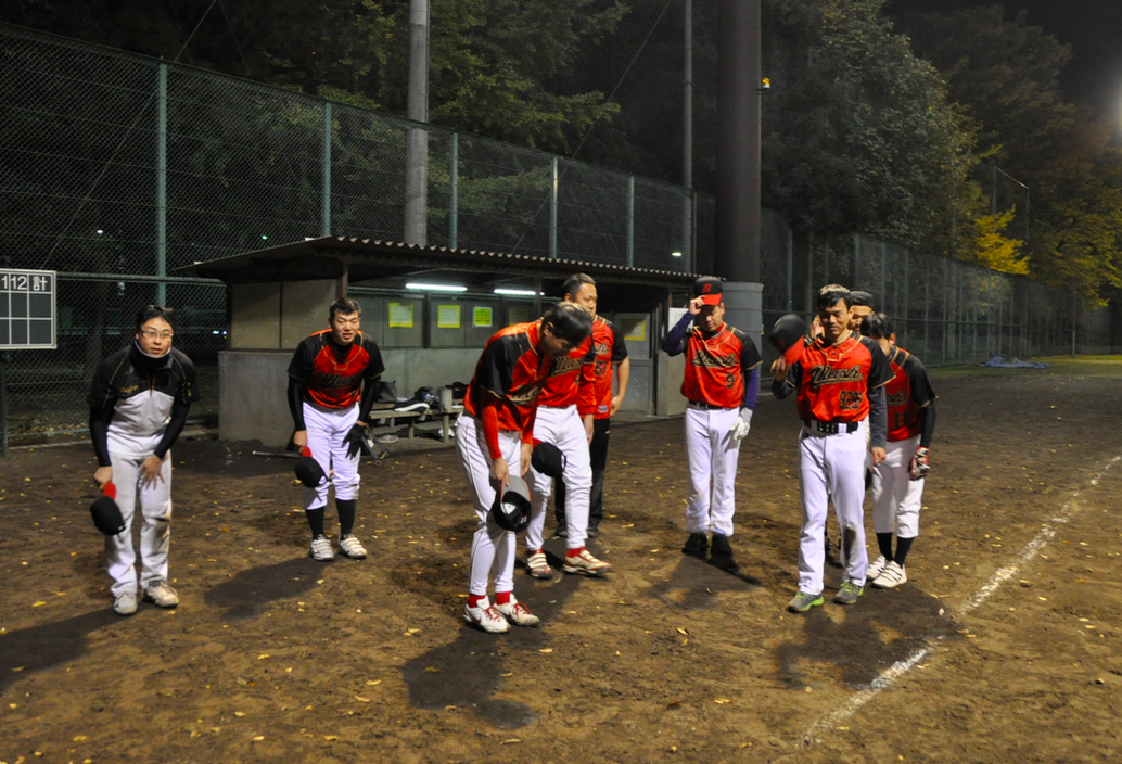 11/18@砧B面/徹底的に雨に祟られた今シーズンの最終節。夕方まで小雨が降ったりやんだりの天気だったがなんとか空も踏ん張った。試合はまさかの序盤BLUESの大量リード。健太も絶好調で三振を次々と重ねていく。こりゃ、まさかの楽勝かと思ったら、そこはさすがチャンピオンチーム。6回投球がややが単調になった健太から連打の嵐で6点をあげ2点差につめより、終了時刻近づく7回表、クローザー堀川くんも攻め込まれ同点に。しかしそこで時間切れ、規定により7回は不成立でBLUESの勝利となった。これで、勝ち点では3位のBLUESの年間最高勝率が決定した。
