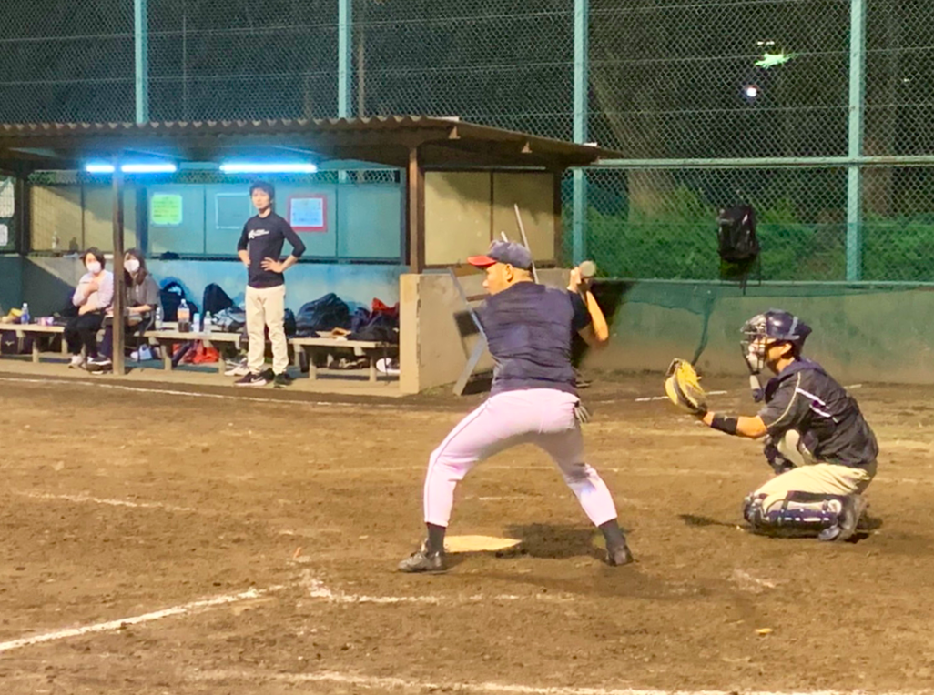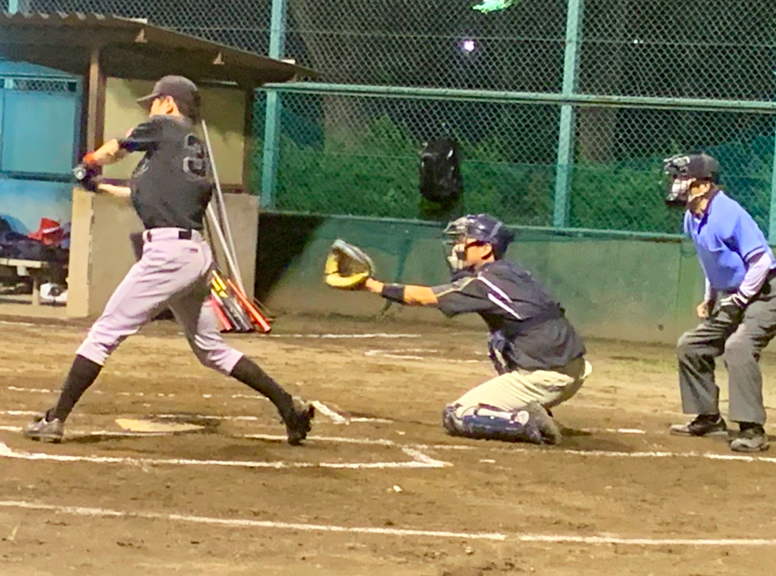 これがブルースvs四谷戦!?思わずそう言いたくなるような引き締まったナイスゲーム。四球もエラーも少なく緊張感のあるゲームが最終回まで続くも。ブルース最終回の攻撃で同点に追いつき更にノーアウト2塁の場面で時間切れ、ドロー。でも、みんな野球の楽しさを満喫した夜となった。![]()