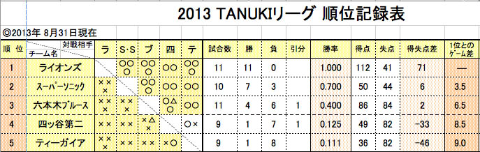 BLUESはダントツの3位。上を目指すにはLIONSとSSを破るのみ!