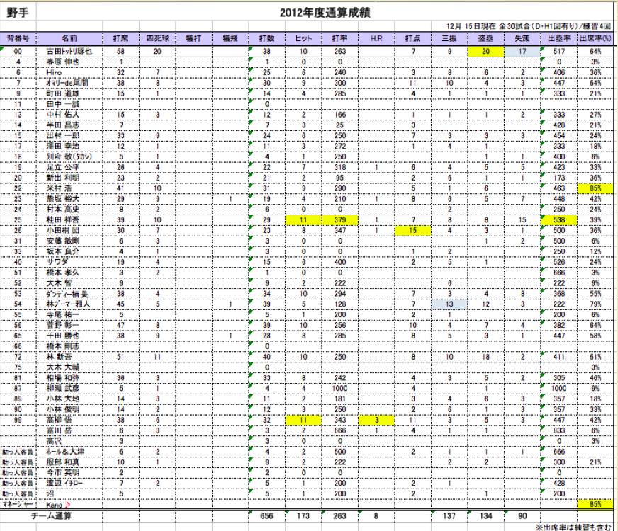 発表!年間成績&優秀選手!!!