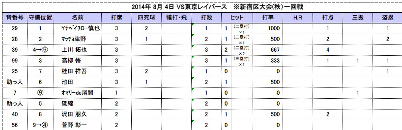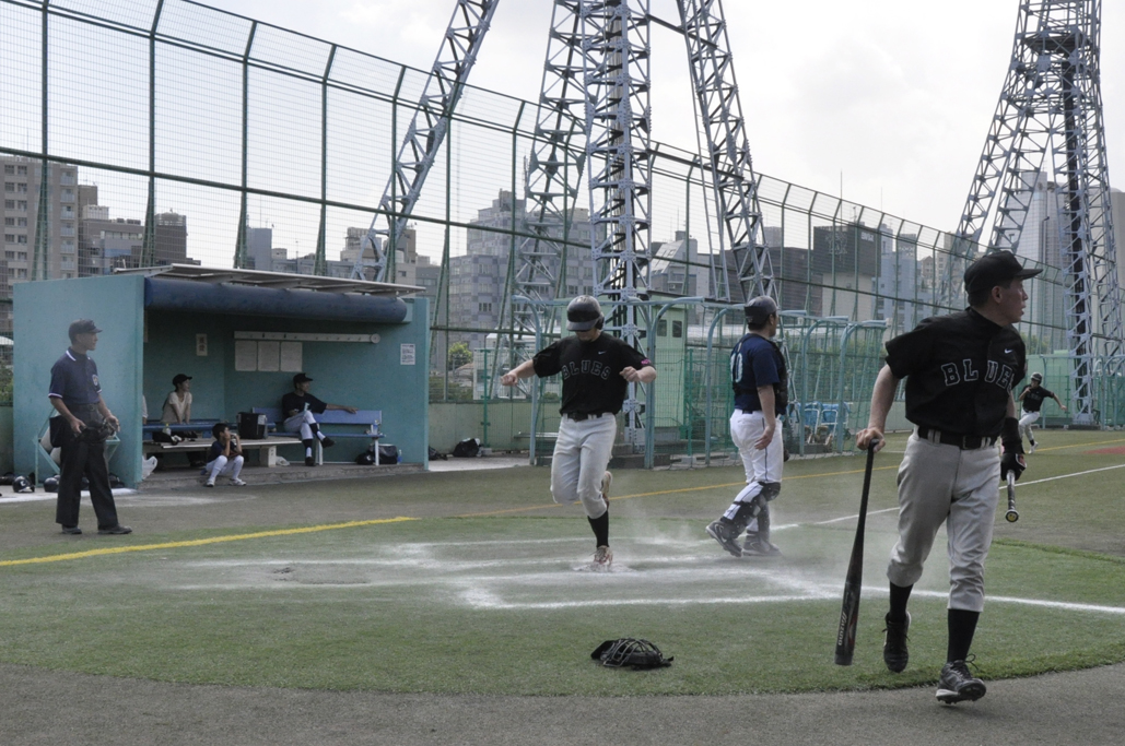 まさに灼熱地獄。朝九時半からの試合とはいえ気温は36度を超え、落合球場の人工芝からはゴム臭い臭いすら漂う中での新宿区『秋の』大会初戦。相手チームのキャッチャーが素晴らしいキャッチングとスローイングを見せ、いつもの機動力がなかなか発揮できず、序盤は小康状態。しかし打者が一巡した3回、ブルース打線が一気に炸裂!打者1巡半で一気に11点を上げ初の4回コールド勝ち。思わず短いゲーム時間に審判からも「助かります」と礼をいわれました!![]()