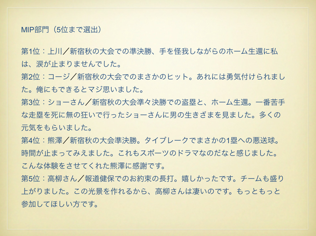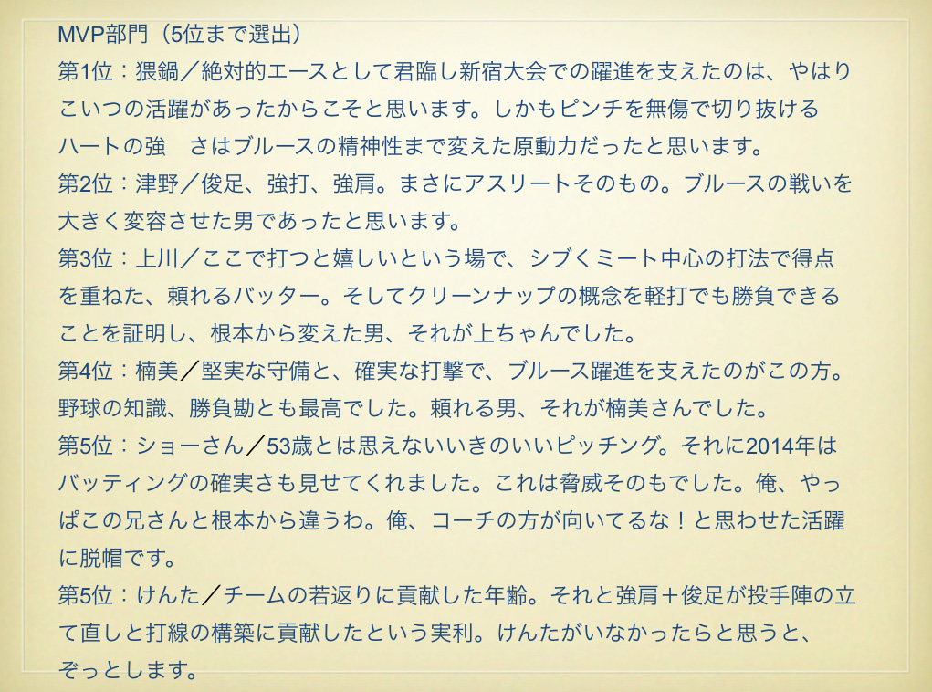 BLUESのみなさん、今年もお疲れさまでした。