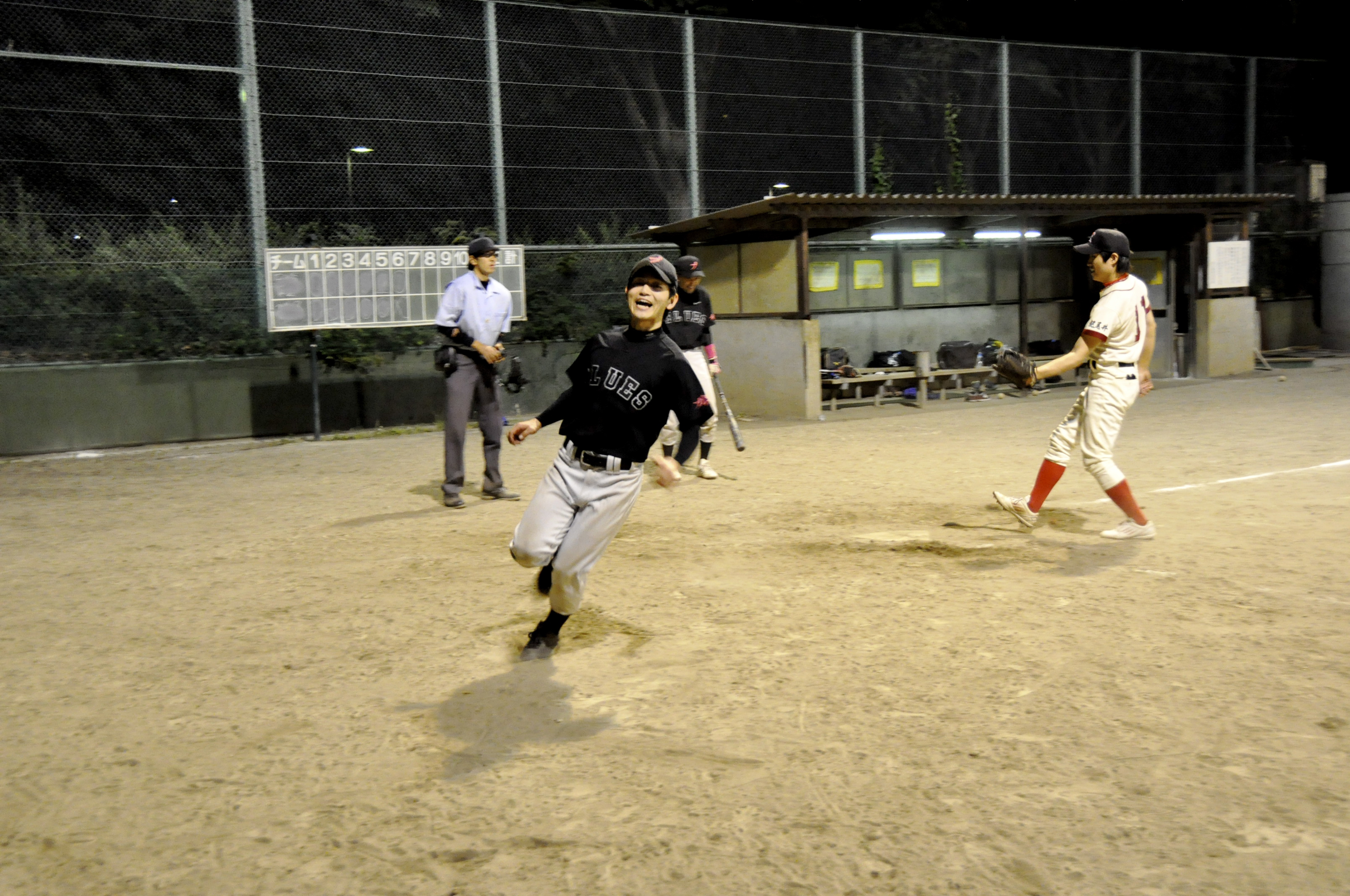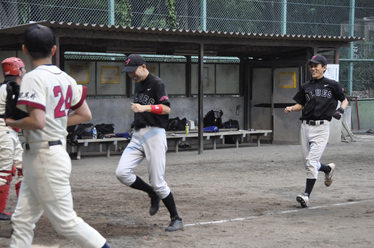 健太が帰ってきた!半年のブランクを全く感じさせない、元気細胞は健在!好打に加え、ショートストップとして見事な守りを見せたかと思えば、最終回は、Y鍋アニキの勝利をになってピシャリと四ツ谷の攻撃を押さえて、四ツ谷第二を連続撃破!!TANUKIリーグでは負けないBLUES!!![]()