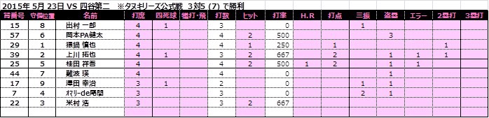 | 四ツ谷第二 | 0 | 0 | 0 | 1 | 2 | 0 | 3 | |||
