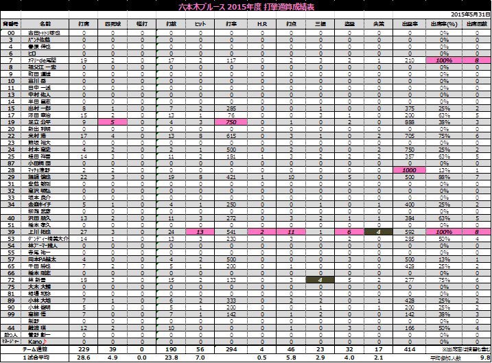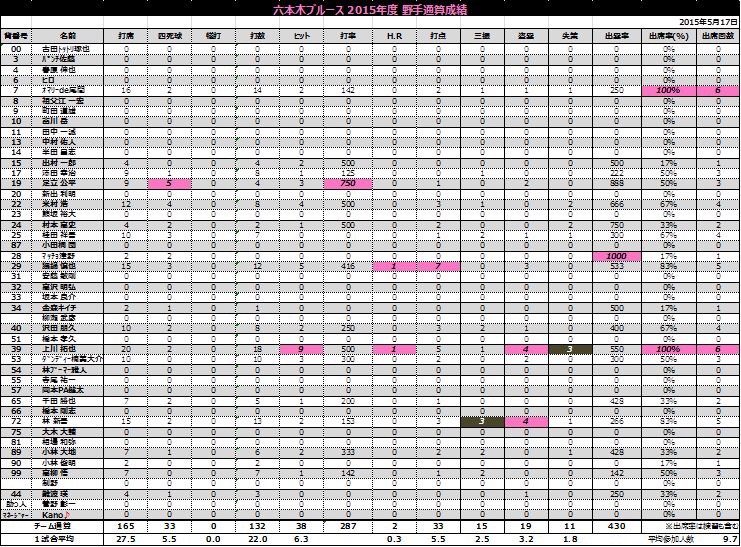 以下、カミちゃんがまとめてくれたここまでの個人通算成績です。