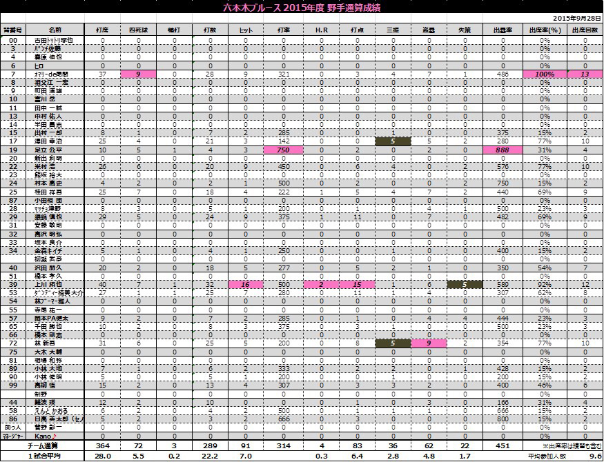 課題は中継プレーですね。あと事前の練習も多めに出来たのは良かった点です、集合時間には試合開始1時間前が良いかと思います。次回は10月12日月曜祝日です、参加表明宜しくお願いしまーす!!