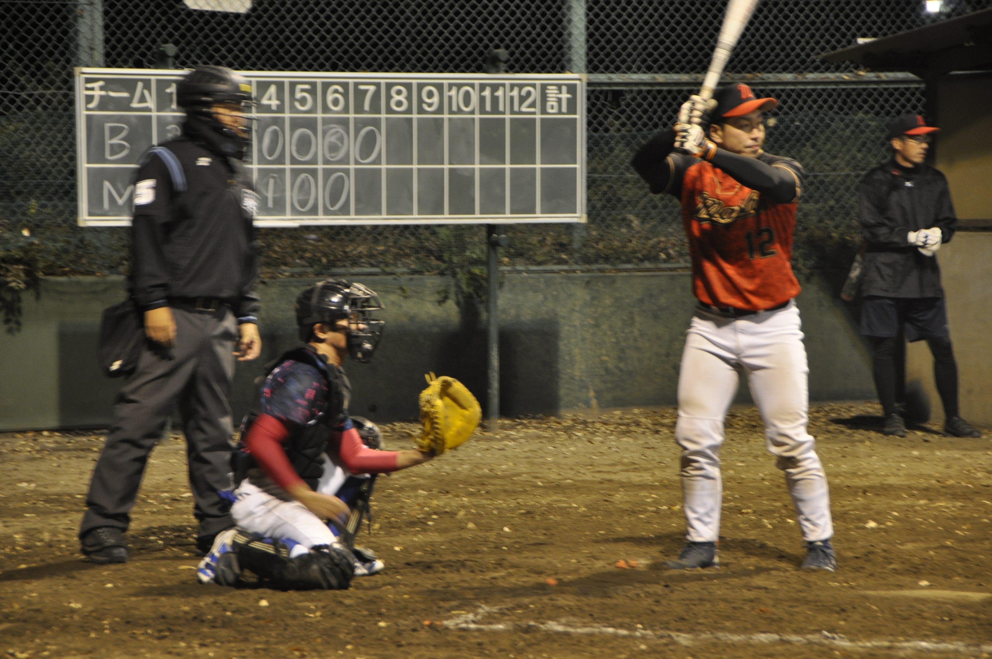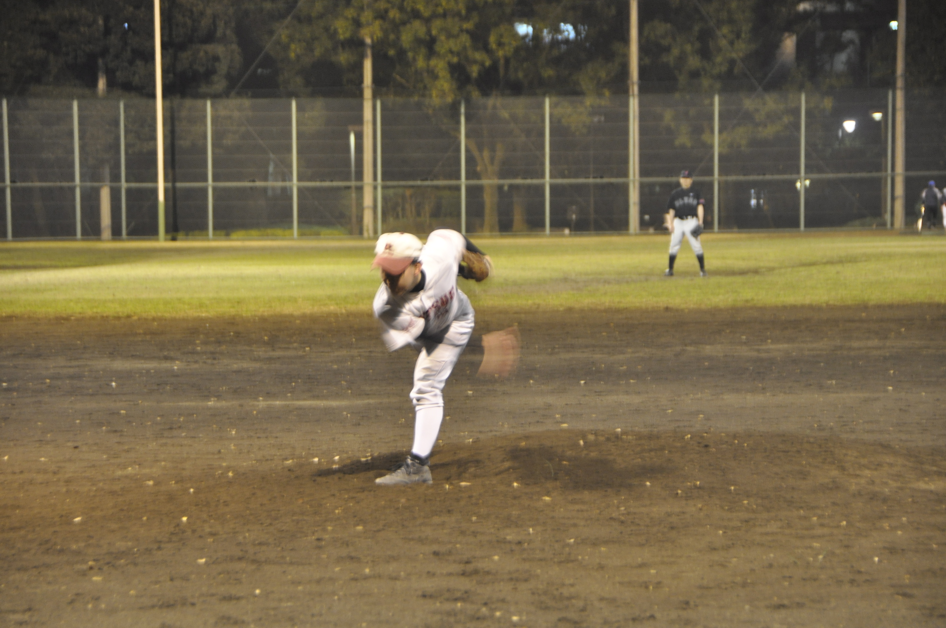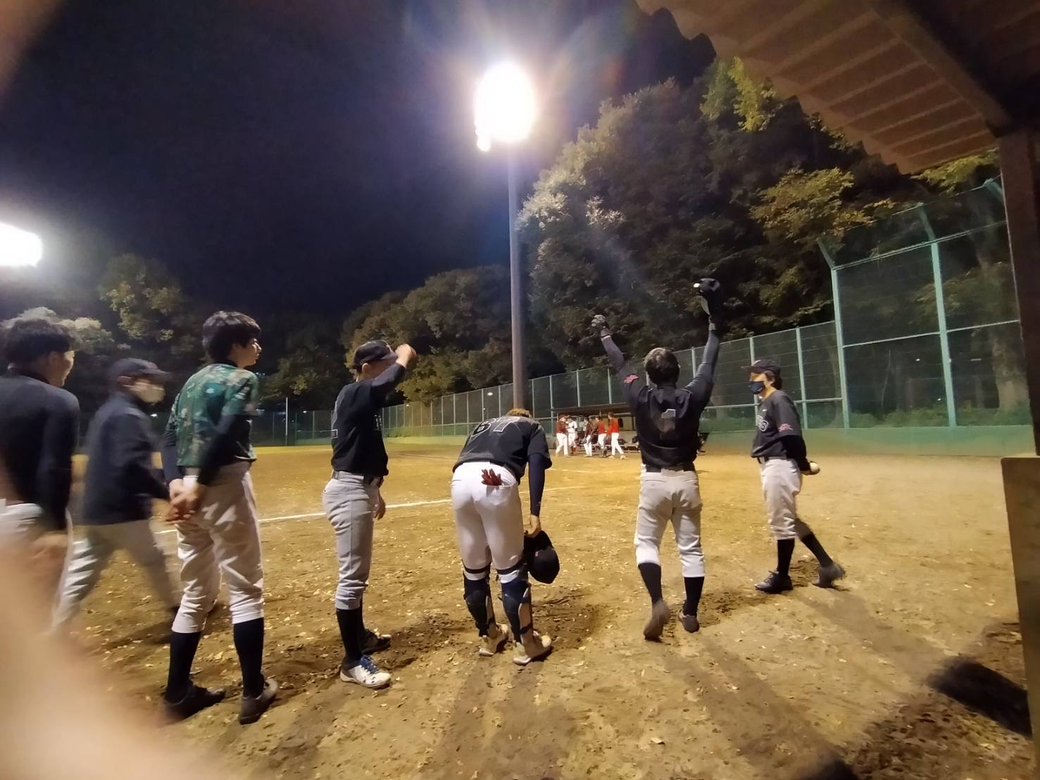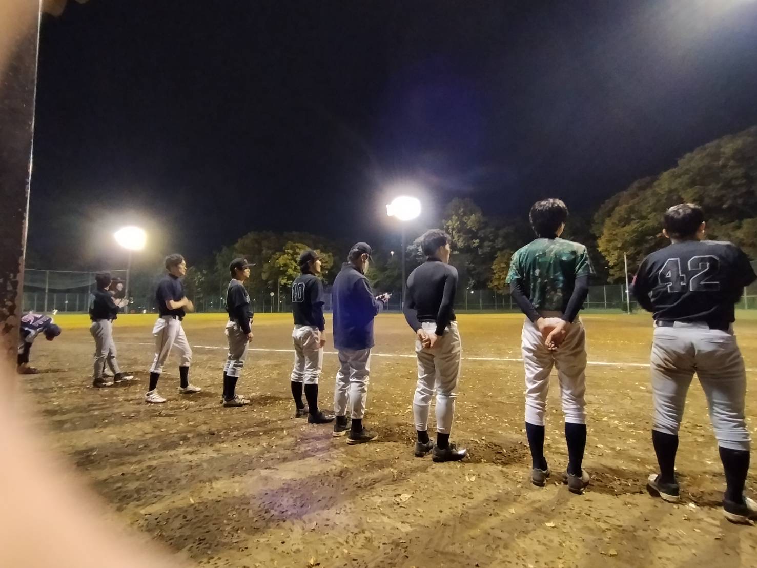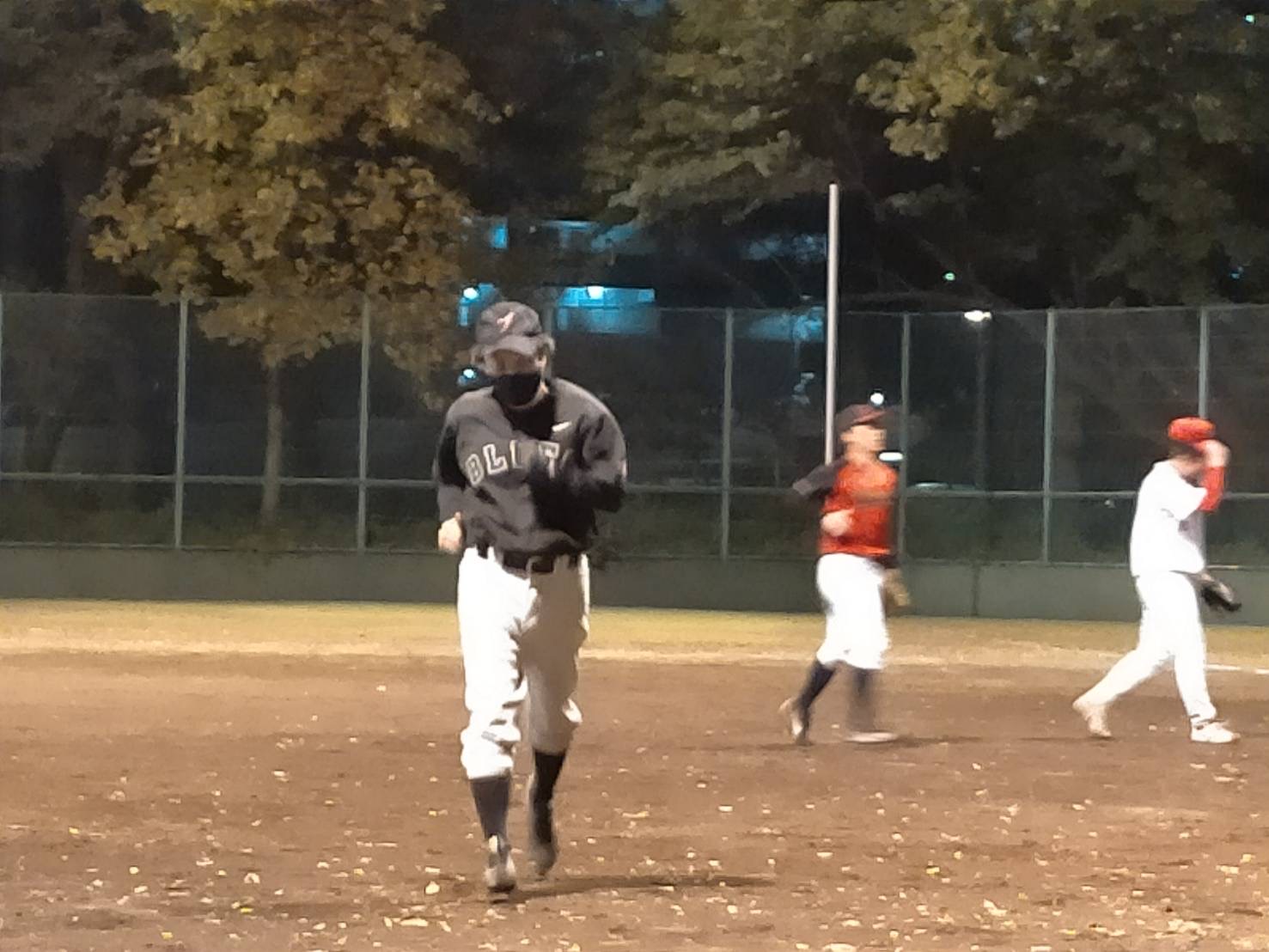 清々しい秋の夜空の下、難しいシーズンだった2020年にもぶれない強さを誇りV4を狙う王者Mashに、前節は接戦の末引き分けに終わっていた。今回はそのMASHとの優勝をかけた天王山。ブルースは初回、2回と先制するも、追加点のチャンスは摘み取られ、最小得点での序盤展開。しかし、わがエース健太もランナーを出しながらも、ここ一番での勝負所でMASHのパワーヒッター、そして佐野さん、関野さんといった好打者をねじ伏せ点を与えない。結局終わってみれば6回完封!勝ちたい気持ちがMASHを少しだけ上回っていたのかも。これで5年ぶりのBLUESのTANUKIリーグ制覇をほぼ手中に収めた。両チーム、NICE GAME!!