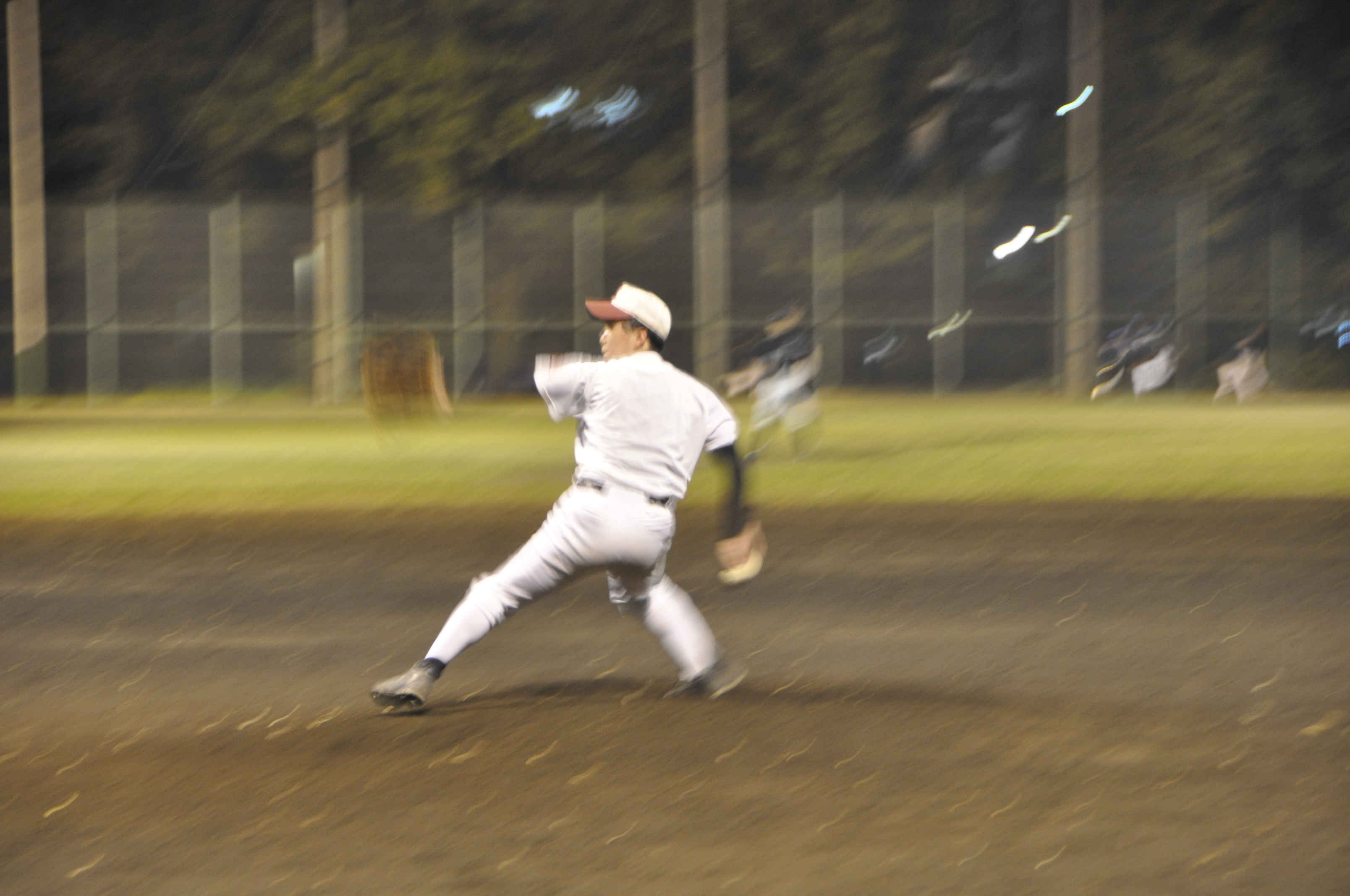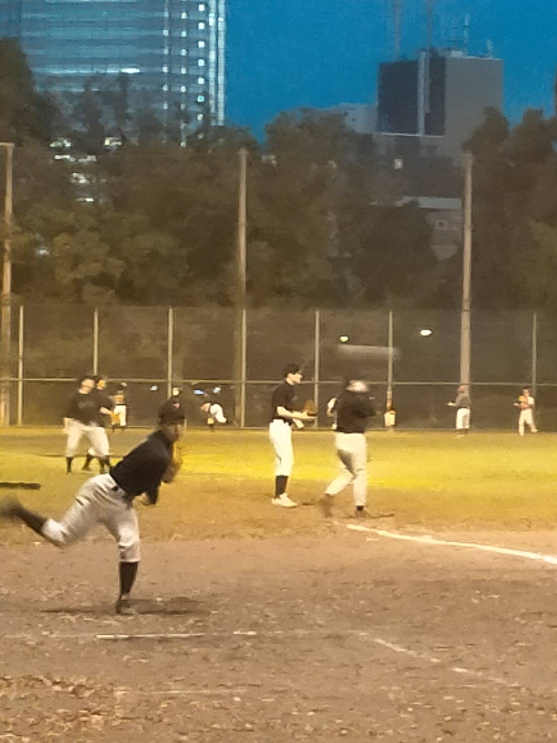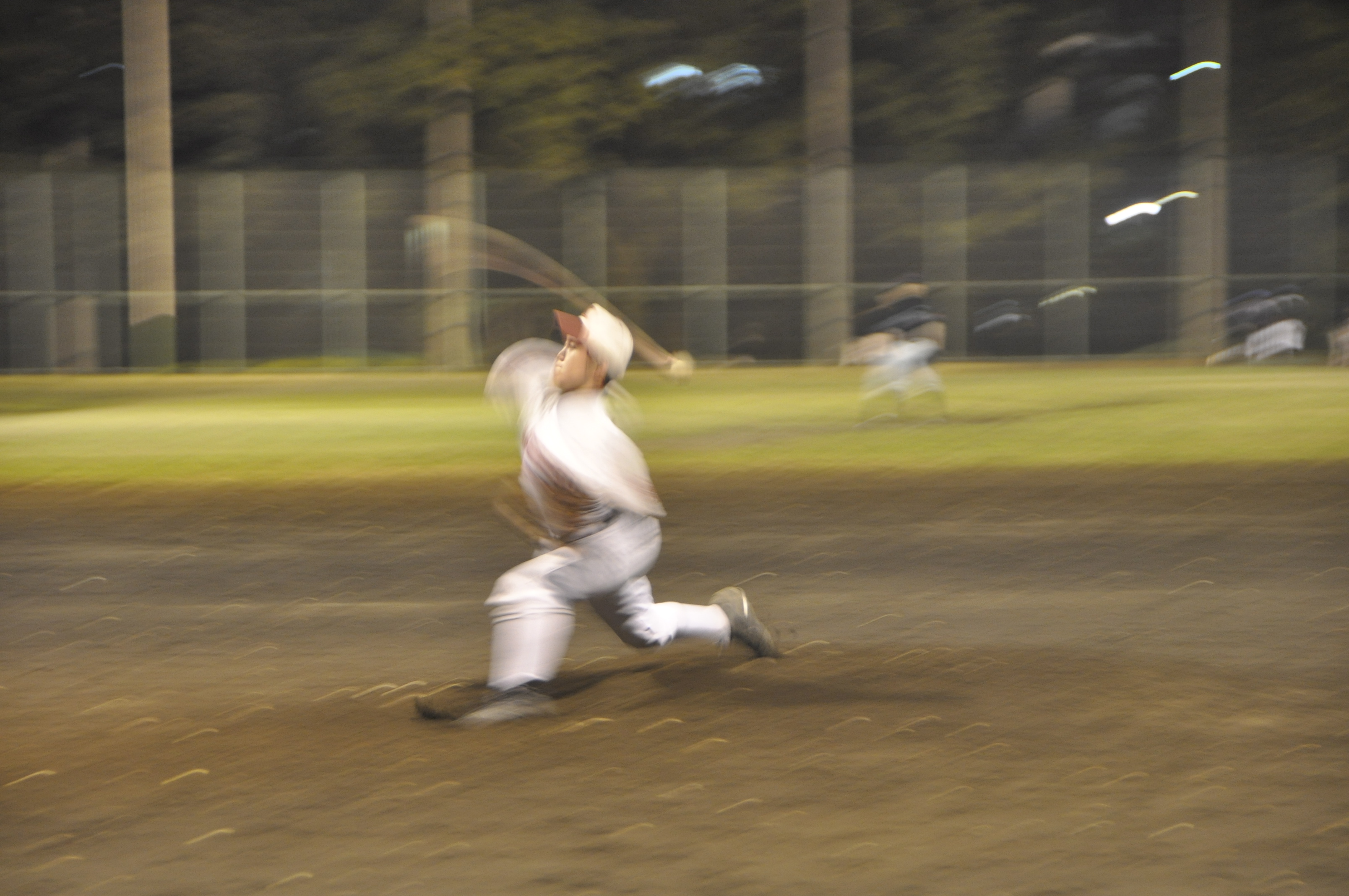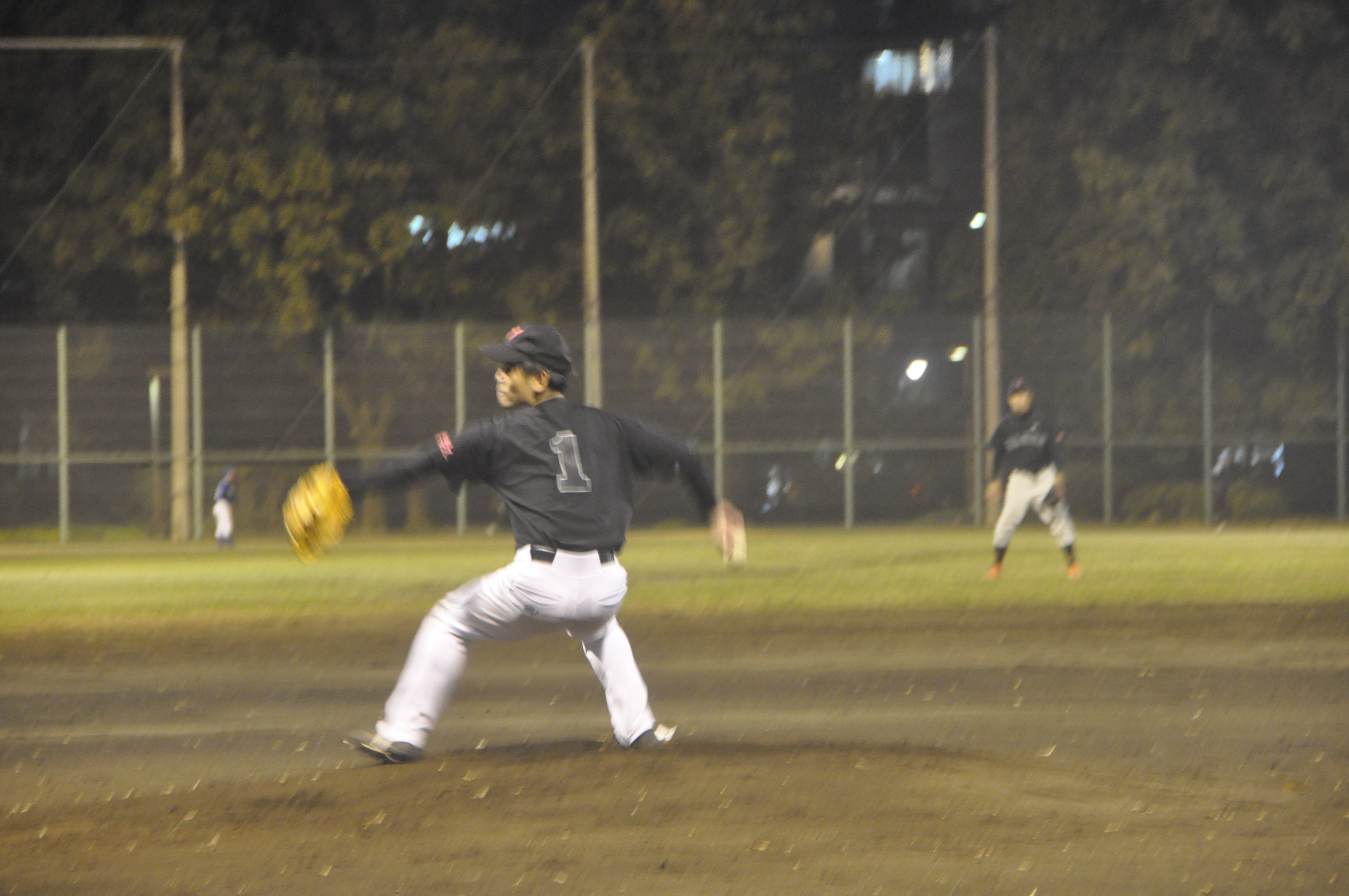 清々しい秋の夜空の下、難しいシーズンだった2020年にもぶれない強さを誇りV4を狙う王者Mashに、前節は接戦の末引き分けに終わっていた。今回はそのMASHとの優勝をかけた天王山。ブルースは初回、2回と先制するも、追加点のチャンスは摘み取られ、最小得点での序盤展開。しかし、わがエース健太もランナーを出しながらも、ここ一番での勝負所でMASHのパワーヒッター、そして佐野さん、関野さんといった好打者をねじ伏せ点を与えない。結局終わってみれば6回完封!勝ちたい気持ちがMASHを少しだけ上回っていたのかも。これで5年ぶりのBLUESのTANUKIリーグ制覇をほぼ手中に収めた。両チーム、NICE GAME!!